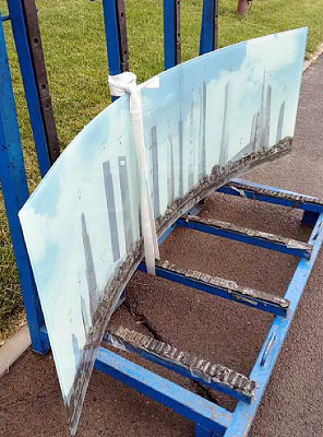Glass (R=175mm) Laminated, Glazed.